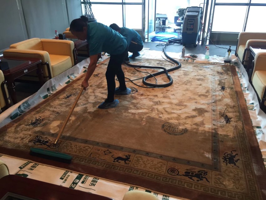 4·深层清洁,灰尘一旦在地毯纤维深处沉积,必须采用抽洗方法进行深层清洁,使地毯恢复原有的光亮清洁。对水有敏感的地毯,可用干泡清洗代替抽洗法进行清洁。
